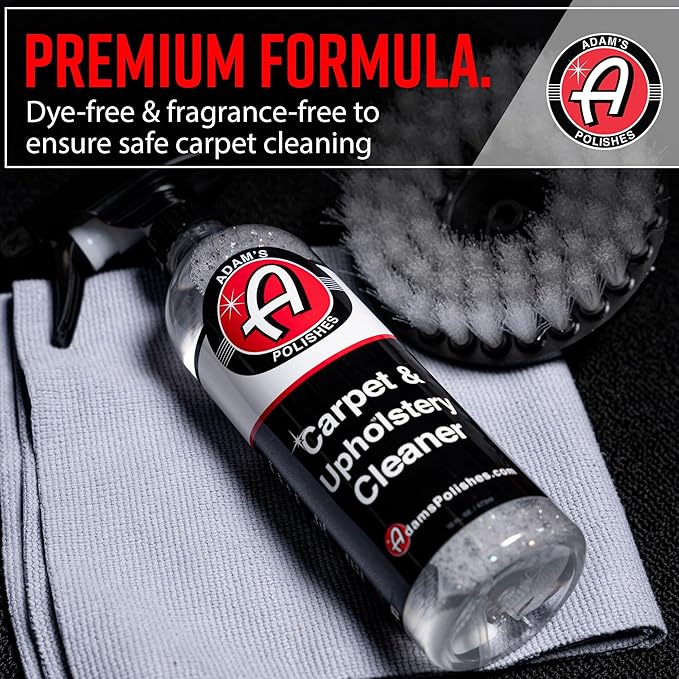 Adam’s Carpet & Upholstery Cleaner is a simple and effective cleaner for any carpet, fabric, or upholstery surface. Almost all vehicles contain one kind of porous fabric, carpet, or upholstery headliner. To properly clean the surface you’ll need a cleaner that is effective at stain removal, but gentle enough to not damage the texture, color, or overall appearance of the surface. Adam’s Carpet & Upholstery cleaner combines a safe, non-toxic and hypoallergenic formula with a durable, effective option to be one of the best interior carpet cleaners on the market.